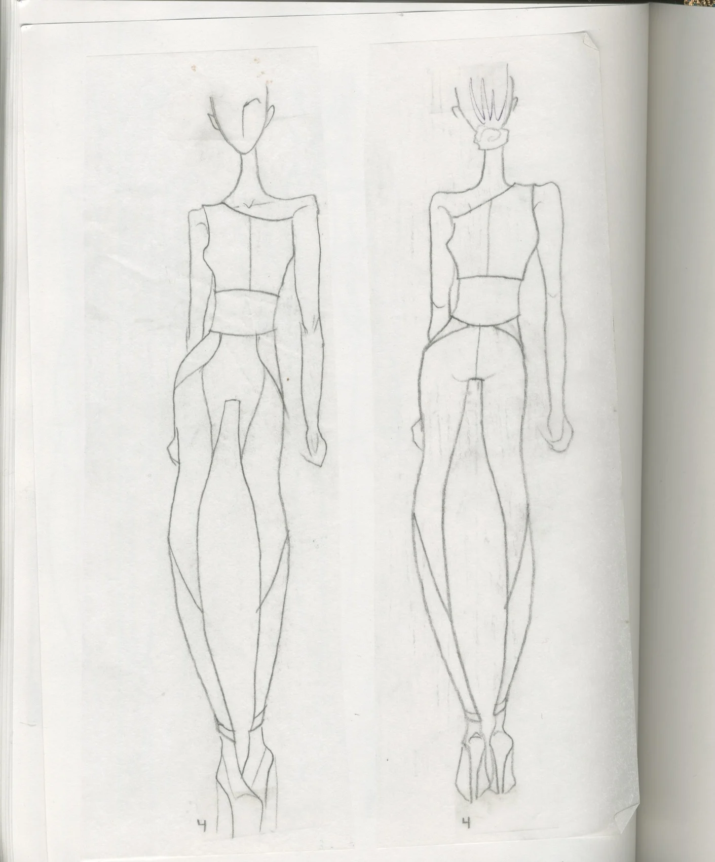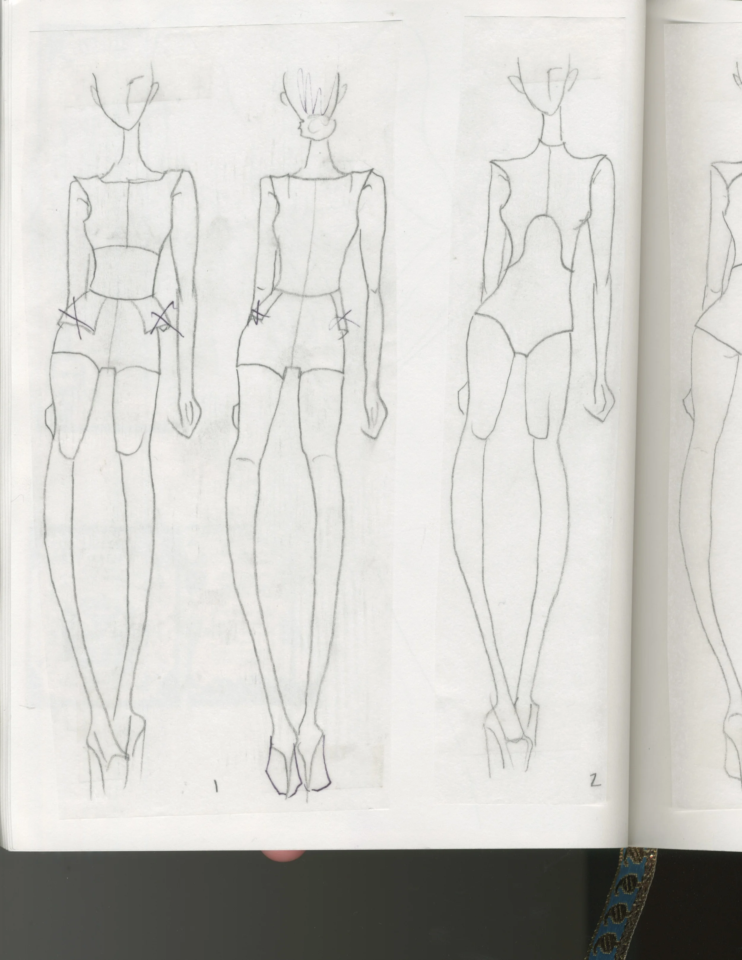 Below are some pages from my process books as well as muslin fittings throughout the process.